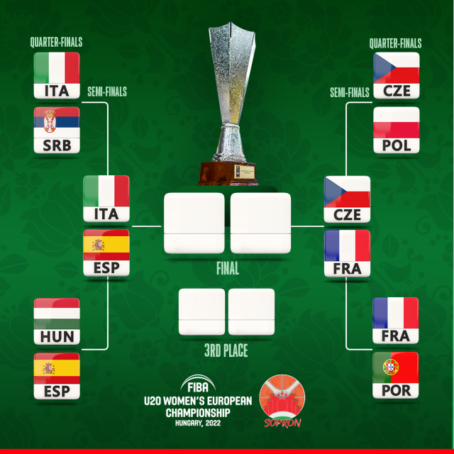 SOPRON (Hungary) - The Semi-Finals of the FIBA U20 Women's European Championship will see Italy, France, Czech Republic and Spain do battle as the race for the podium intensifies.