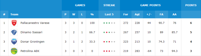Petrolina AEK v Pallacanestro Varese (H2H: Varese +35, 109-74) Dinamo Sassari v Donar Groningen (H2H: Sassari +6, 84-78) [/unordered]Permutations