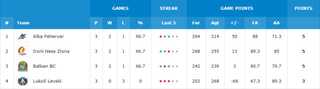 Alba Fehervar v Balkan (H2H: Balkan +6, 88-82) Ironi Ness Ziona v Lukoil Levski (H2H: Ness Ziona +9, 98-89) [/unordered]Permutations