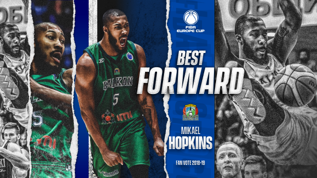 To capture the Best Forward honors in the Fan Awards, Hopkins collected 2,106 votes for a 24.0 percent share of the total, besting two FIBA Europe Cup Finalists in Xavier Cooks of s.Oliver Wurzburg and Dinamo Sassari star Rashawn Thomas. Cooks finished second with 1,656 votes (18.9 percent), while Thomas wasn't too far behind in third with 1,511 votes (17.2 percent).