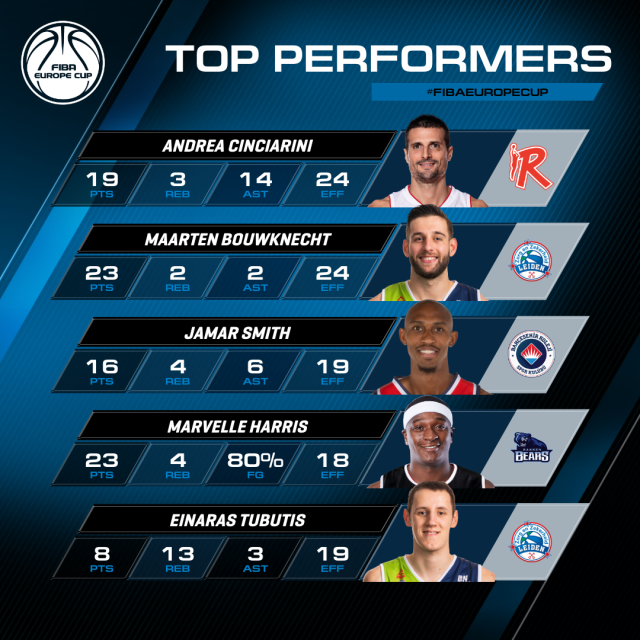 MUNICH (Germany) - Andrea Cinciarini and Maarten Bouwknecht produced the highest efficiency valuations from the second legs of the FIBA Europe Cup Quarter-Finals as several guards showed out on Wednesday.