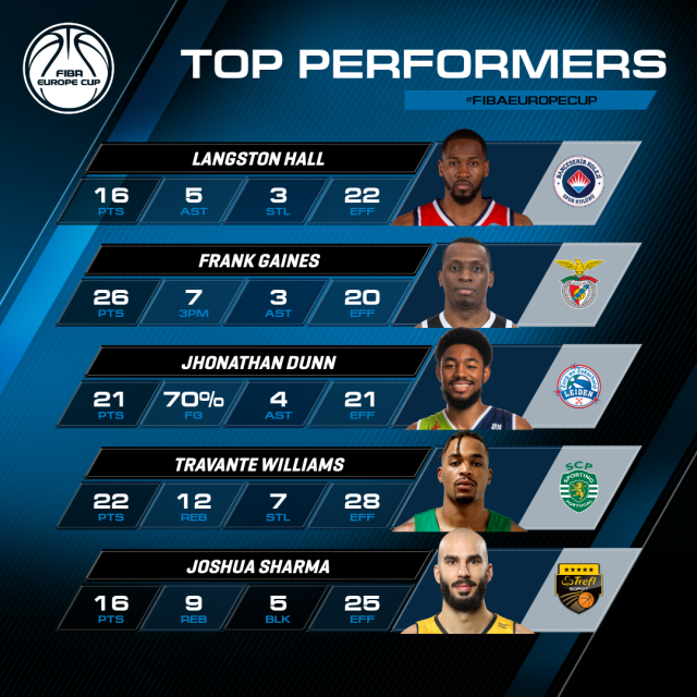 Frank Gaines ensured it was a successful night for Portuguese sides after leading Benfica to a dominant 94-57 triumph over CSM CSU Oradea with a game-high of 26 points in 27 minutes. The American netted seven triples and also added 3 assists in the win.