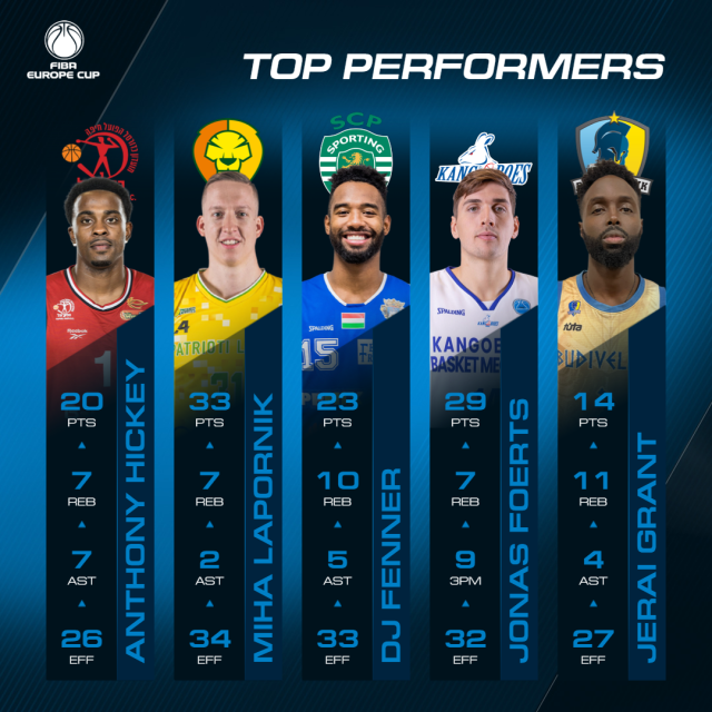 MUNICH (Germany) - Miha Lapornik was the leader in efficiency on Gameday 4 of the FIBA Europe Cup Regular Season with a mark of 34.
