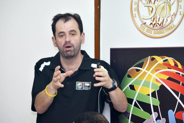 Michael Haynes is seen here addressing FIBA Africa coaching instructors