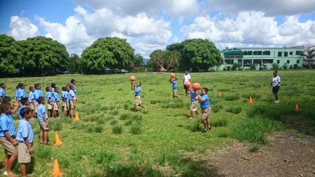 Basketball Fiji’s H4H coaches conducting a clinic with students at Marist Primary in Suva