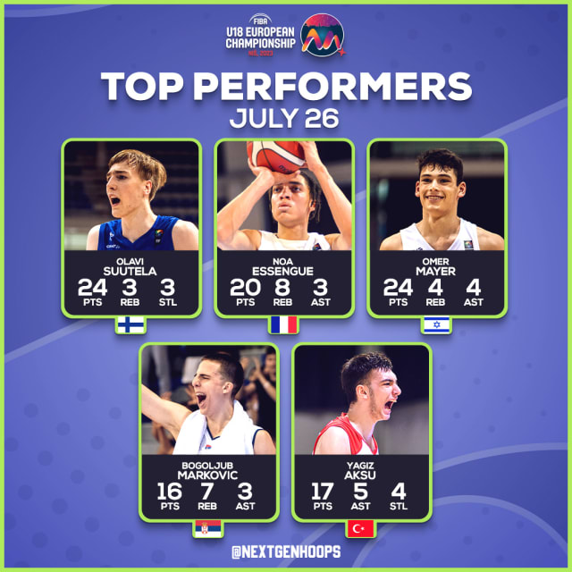 France had all hands on deck in a 40-point win over Poland, yet the 16-year-old Noa Essengue stood out with 20 points, 8 rebounds, 3 assists and an efficiency rating of 25 in only 20 minutes.