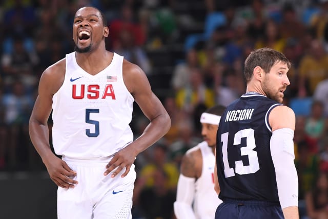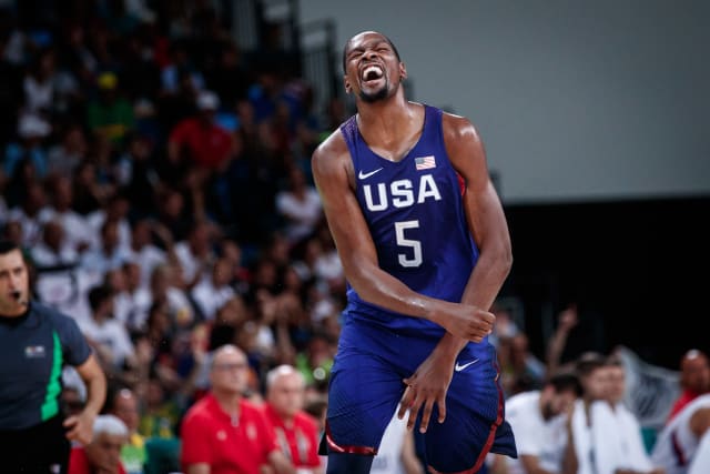 Facing the best Australia team ever assembled and trailing by 15 points in the first half, Durant and the Americans struck back with a vengeance. The USA went on a 48-14 run to lead 74-55 at the end of the third quarter and cruised the rest of the way, with KD scoring a game-high 23 points while also coming up with two steals and a block.