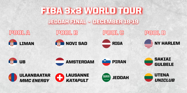 JEDDAH (Saudi Arabia) - There will be no easy games in the World Tour's showpiece event underlined by 3x3's No.1 Liman (SRB) facing a major challenge against Ub (SRB) on Day 1 of the Jeddah Final on December 18-19.