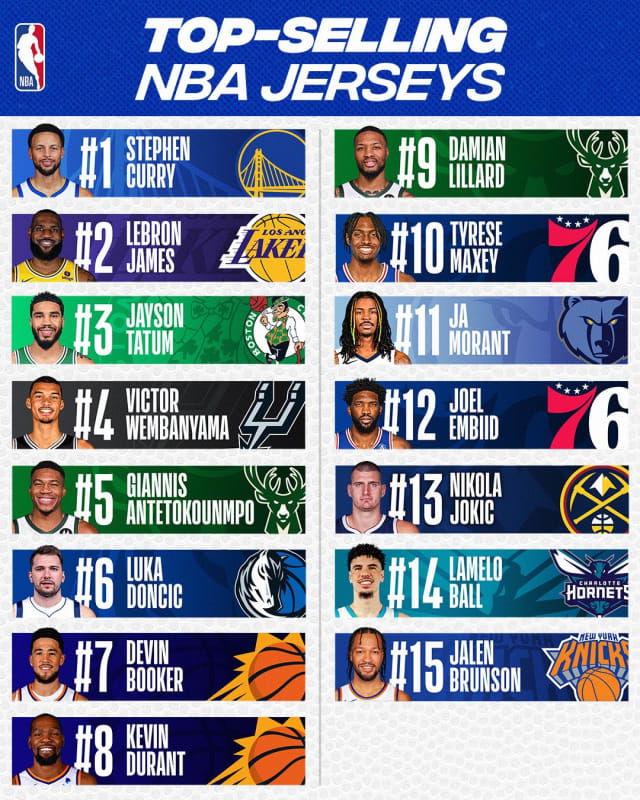Victor Wembanyama's San Antonio jersey is the fourth best-seller and it's been in his rookie season. The player that the world can't wait to see in a major international event is poised to make his Olympic bow for France in his own country! It doesn't get much better than that. Wemby's stats with the San Antonio Spurs weren't bad at all. He is averaging a jaw-dropping 21.4 points and 10.6 rebounds.
