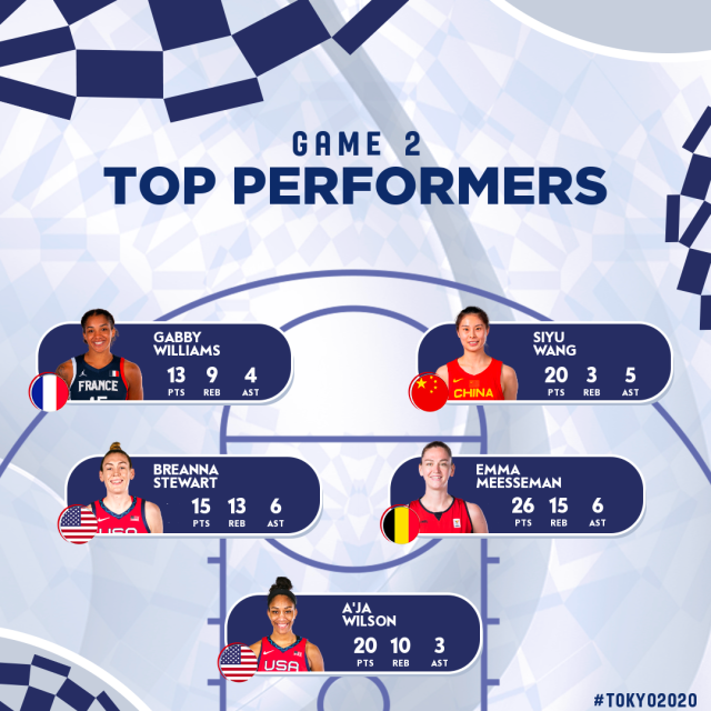 TOKYO (Japan) - The second group games of the Women's Olympic Basketball Tournament are complete and it's Emma Meesseman of Belgium who lands top-performer honors once again after another spectacular displ
