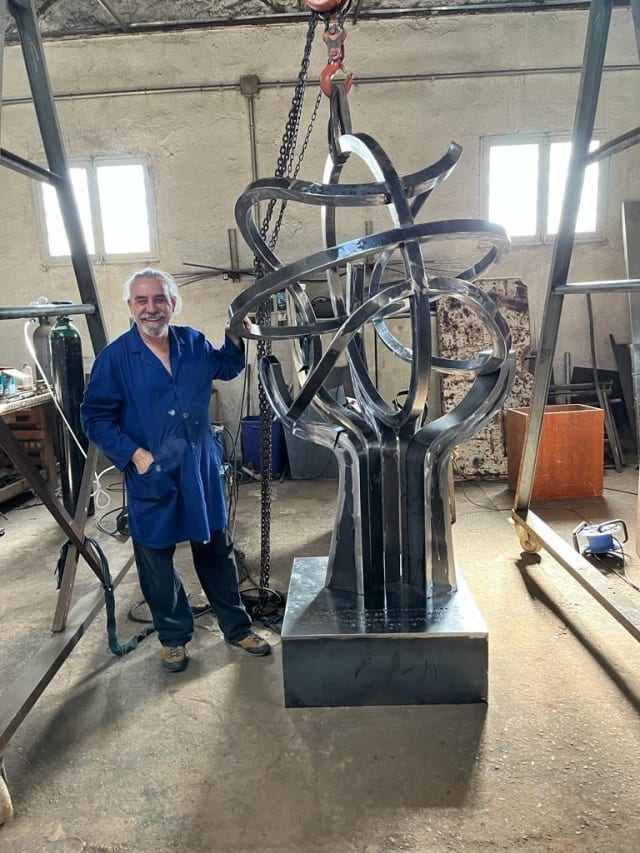 The artwork was created by talented sculptor Andrés Lasanta. Constructed in corten steel, it captivates with its elegant simplicity, an open palm cradling a hollow ball. In spite of the simplicity of its elements, it reveals a transformative effect when viewed from various angles. The interplay of shadows with the changing sunlight adds enchantment to its overall appeal.