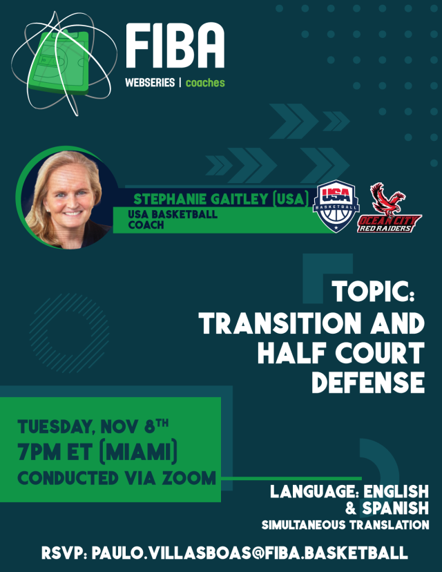 MIAMI (United States) – As we continue to empower our National Federations throughout the Americas, FIBA's Regional Office in Miami is excited to announce the next Virtual Coaches Clinic with coach Stephanie Gaitley (USA).