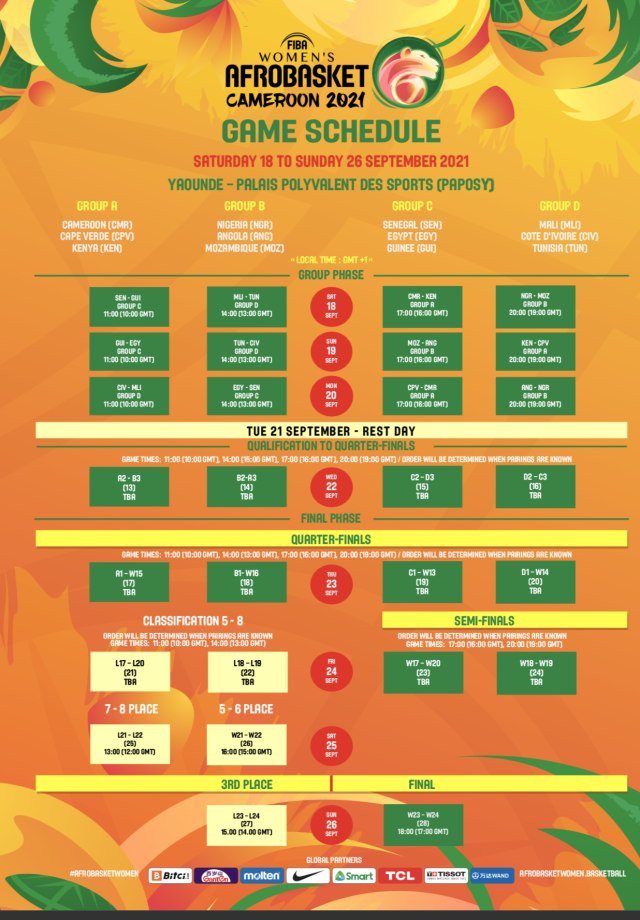 The opening game of the FIBA Women's AfroBasket 2021 will be between the eleven-time African champions Senegal and wild card entrant Guinea at 11:00 am (10:00 GMT) in a Group C opener.