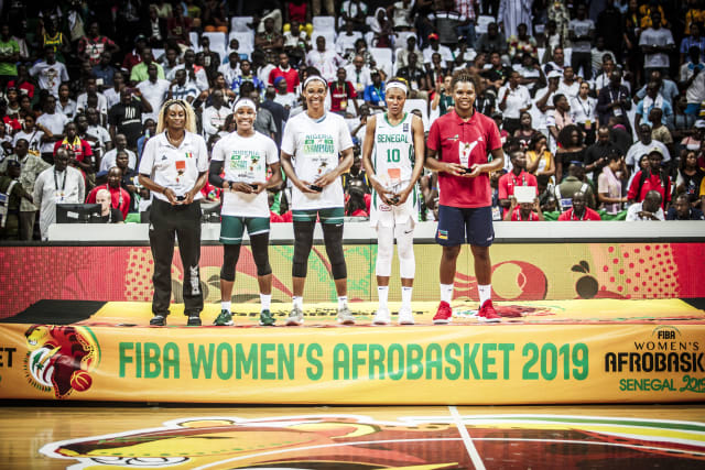 Touty Gandega (far left) was named to the 2019 FIBA Women's AfroBasket All-Tournament Team