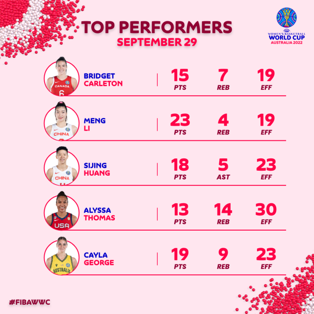 China are rolling with two ballers in the Top Performers lineup, with Sijing Huang and Meng Li both effective on the wings in an 85-71 victory against France.