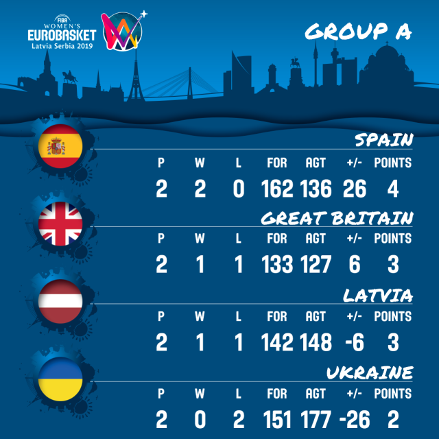 - Ukraine will be eliminated and there will be a three-way tie for positions 1st, 2nd and 3rd, since Spain, Latvia and Great Britain will all hold 2-1 records. The final standings will be determined by head-to-head records and points differential.  In this scenario, only Great Britain can't drop as low as third place.
