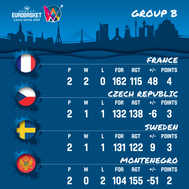 - Montenegro will be eliminated and there will be a three-way tie for positions 1st, 2nd and 3rd, since France, Sweden and Czech Republic will all hold 2-1 records. The final standings will be determined by head-to-head records and points differential.  However, in this scenario, Czech Republic can't take first place in the group.
