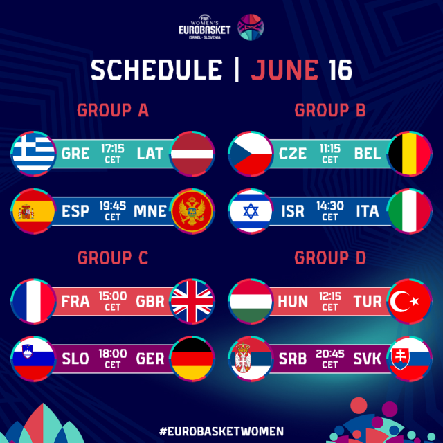 LJUBLJANA / TEL AVIV (Slovenia / Israel) - The second day of action at the FIBA Women's EuroBasket will see many big name nations trying to bounce back from disappointment, while both co-hosts also need to get rolling.