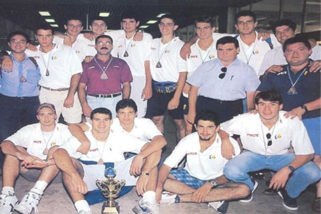 Jimenez (3rd on the left in the back) and the Spain team that clinched third at 1995 World Championship for Junior Men