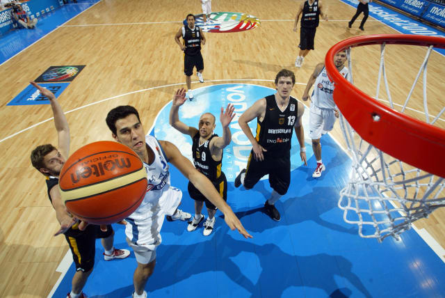 Nikos Zisis going to the basket during the EuroBasket 2005 final
