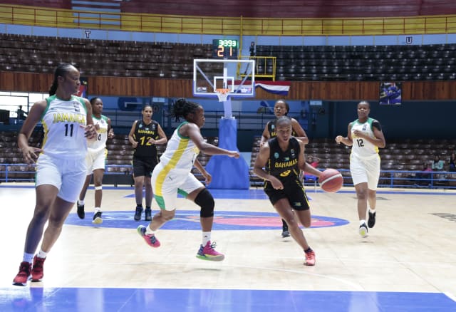 Las bahameñas (1-2) alcanzaron su primer triunfo de la competición al dominar a su similar de Jamaica (0-3). Las vencedoras aprovecharon el descuido de sus rivales con el balón (24 pérdidas) y capitalizaron anotando al otro costado en contraataque (23 puntos). También la profundidad de Bahamas fue un factor al conseguir 35 unidades por apenas 8 de las jamaiquinas.
