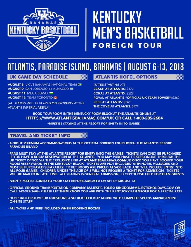 Para más información sobre el Kentucky’s Big Blue Bahamas Tour visite el siguiente enlace (información en inglés), y para actualizaciones de la competencia, visite ligamericas.basketball.