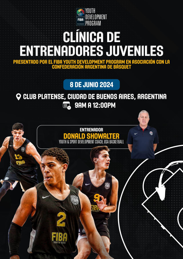 La actividad estará a cargo de Donald Showalter, entrenador de desarrollo deportivo y juvenil de la USA Basketball, y tendrá lugar el 8 de junio, de 9:00 AM a 12:00 PM (hora local), en el Club Platense de la ciudad de Buenos Aires.