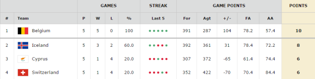 - Iceland will take a 2-2 record and will have to wait to see how they rank in comparison to other second-placed teams if they lose to Belgium and Cyprus beat Switzerland (Iceland’s current point differential in the games with Belgium and Cyprus is +18)