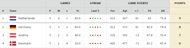 -Netherlands will finish second at 3-1 and qualify if they lose to Germany and Denmark beat Austria by 21 or more points.