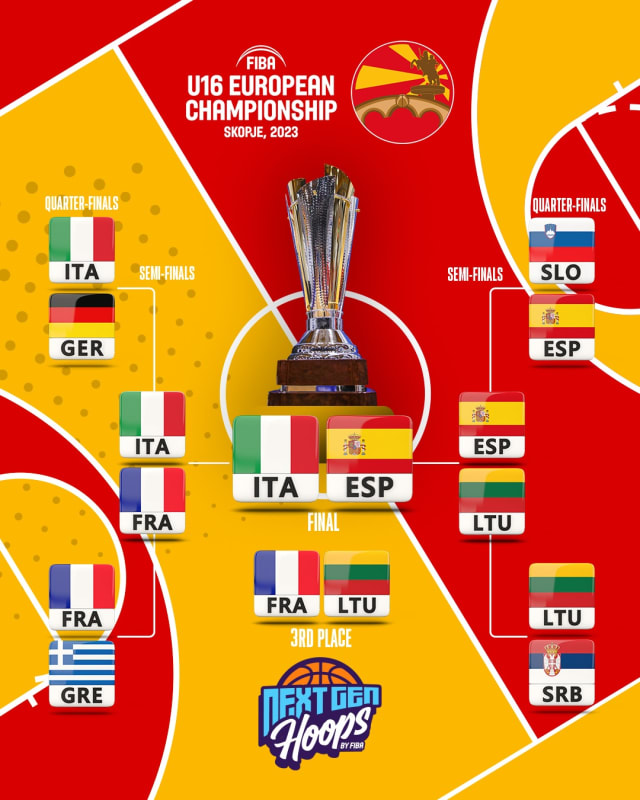 SKOPJE (North Macedonia) - The Final of the FIBA U16 European Championship 2023 is set and Italy will face Spain for the crown after the former surprised France and Spain dethroned Lithuania.