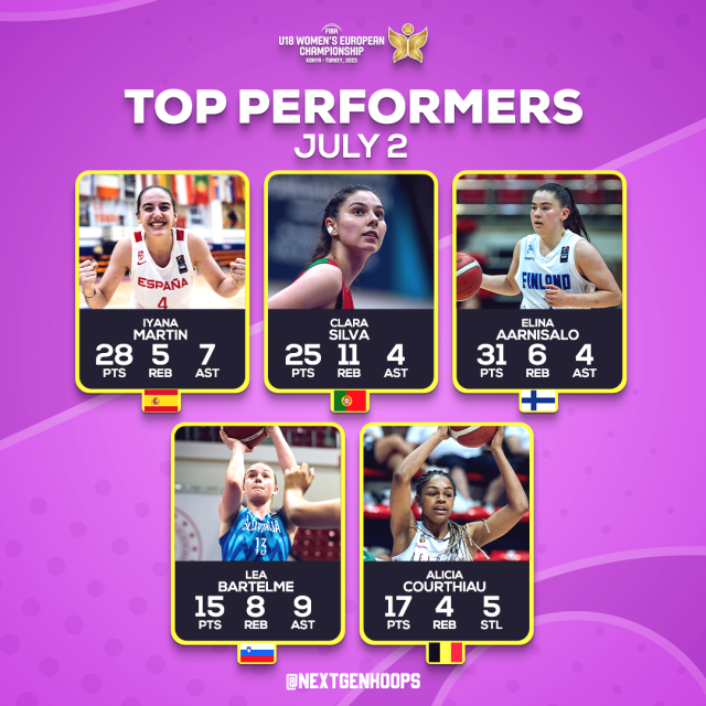KONYA (Turkey) - Only four teams remain unbeaten after two days of competition at the FIBA U18 Women's European Championship in Turkey. Portugal, France, Spain and Slovenia are enjoying the view from the top of their groups.