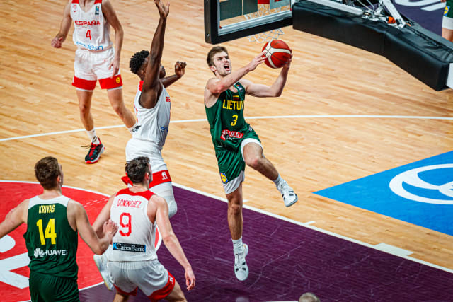Augustas Marciulionis will be an integral part of the Lithuanian squad, as he's one of the most experienced players in the competition: at 20 years old, he's already played a season of college basketball, three FIBA tournaments, 40 games in the Lithuanian LKL and even received some playing time in the Basketball Champions League. The son of 1988 Olympic Champion Sarunas Marciulionis impresses as a high-level ballhandler, crafty driver and creative playmaker. He runs the pick-and-roll like a veteran, often applying deceptive moves to catch opponents off guard. On his drives, he displays tremendous vision and the ability to find the open man from various angles and through tight passing windows. In his freshman season at Saint Mary's, the big guard struggled to score (3.1 PTS, 30% FG, 18% 3P FG), so this tournament will be an opportunity for him to get back on track and prepare for a breakout year in the US in 2022-23.