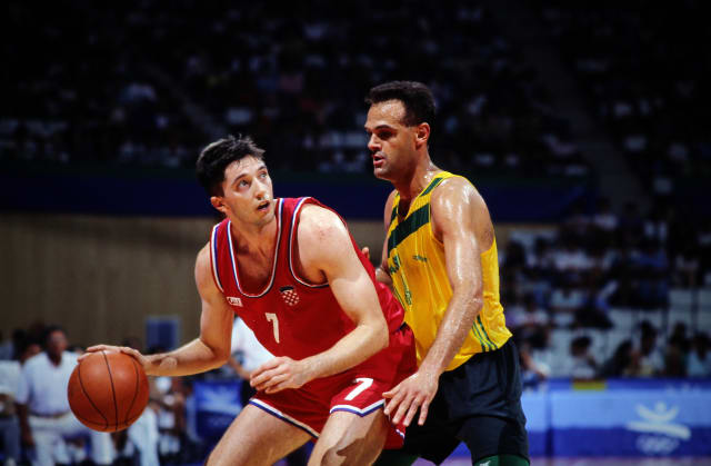Toni Kukoc face à Oscar Schmidt aux JO de 1992