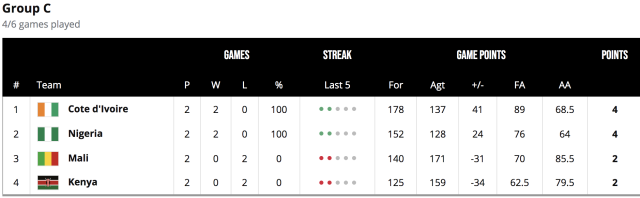 Le programme de dimanche débutera par une confrontation entre deux équipes en quête d'un premier succès dans le tournoi. Celle qui ressortira victorieuse du match Kenya vs Mali terminera probablement 3e du Groupe C - en fonction de la différence de points - et restera ainsi en course pour une place en quarts de finale, tandis que celle qui perdra sera éliminée.