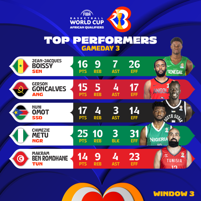 ABIDJAN/ALEXANDRIE/KIGALI - La journée de dimanche a conclu trois jours de basket excitants, marquant par la même occasion la fin du premier tour des Éliminatoires Zone Afrique de la Coupe du Monde FIBA 2023. Les trois villes hôte ont été le théâtre de quelques superbes performances individuelles.