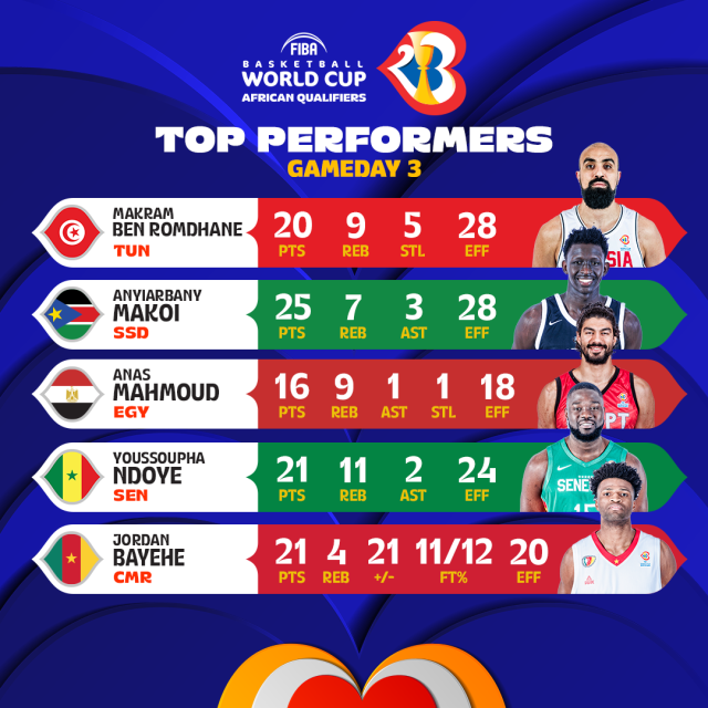 DAKAR (Sénégal) - La seconde fenêtre des Éliminatoires Zone Afrique de la Coupe du Monde FIBA 2023 s'est conclue dimanche à Dakar avec d'incroyables performances individuelles.