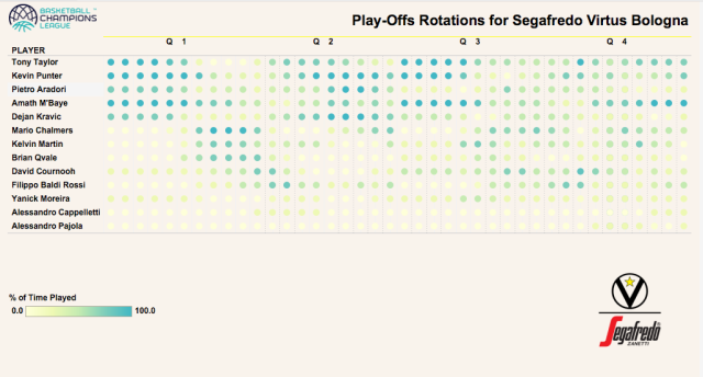 Kevin Punter, Filippo Baldi Rossi, Brian Qvale, David Cournooh, Mario Chalmers (Plus/Minus: +6)