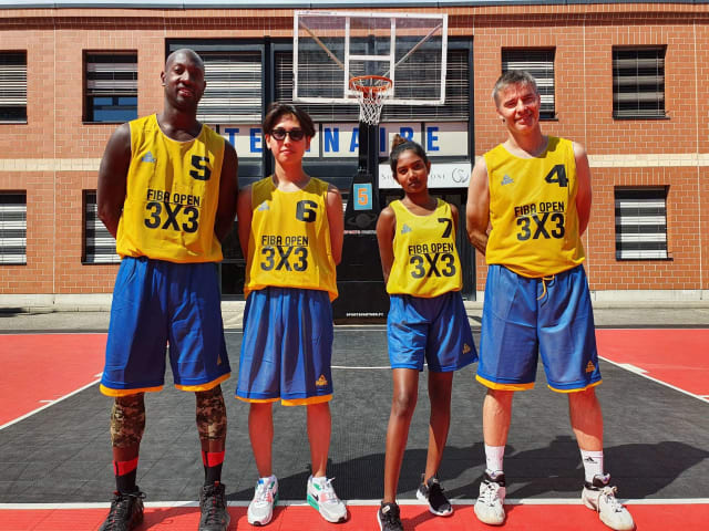 MIES (Switzerland) - Lors du FIBA Open, tournoi annuel de basket 3x3 populaire organisé par la Fondation FIBA autour du siège de la FIBA, une équipe de l'association 'WhatSport' composée en partie de migrants, a pris part aux festivités.