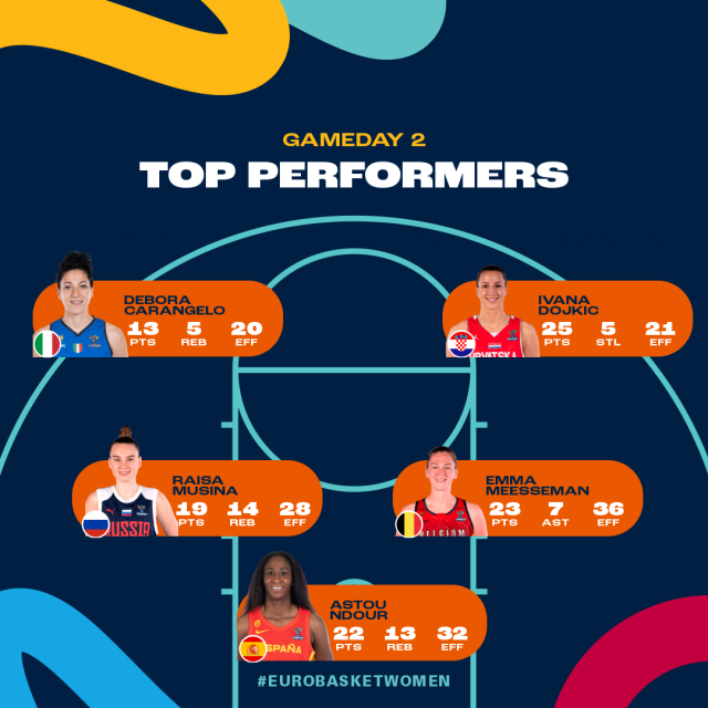 La Russie est quant à elle invaincue après avoir battu la Croatie 73-62 pour passer à 2-0 dans le Groupe D, grâce à une excellente performance de Raisa Musina. Elle a inscrit 19 points et pris 14 rebonds, en plus de 3 passes et 3 interceptions. Dans le même match, la Croatie s'est appuyée sur Ivana Dojkic pour rester dans la course et, bien qu'elle ait échoué, le mérite en revient à l'arrière qui a inscrit 25 points, réalisé 5 interceptions et pris 3 rebonds.